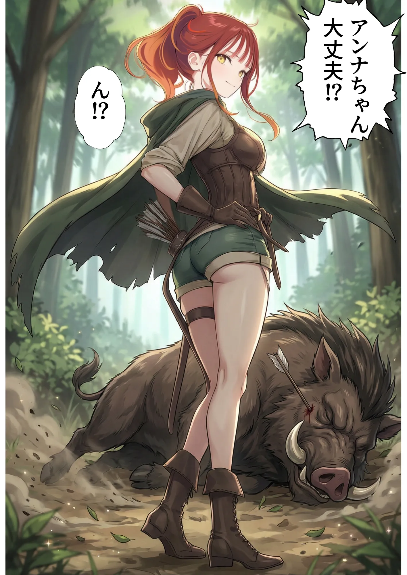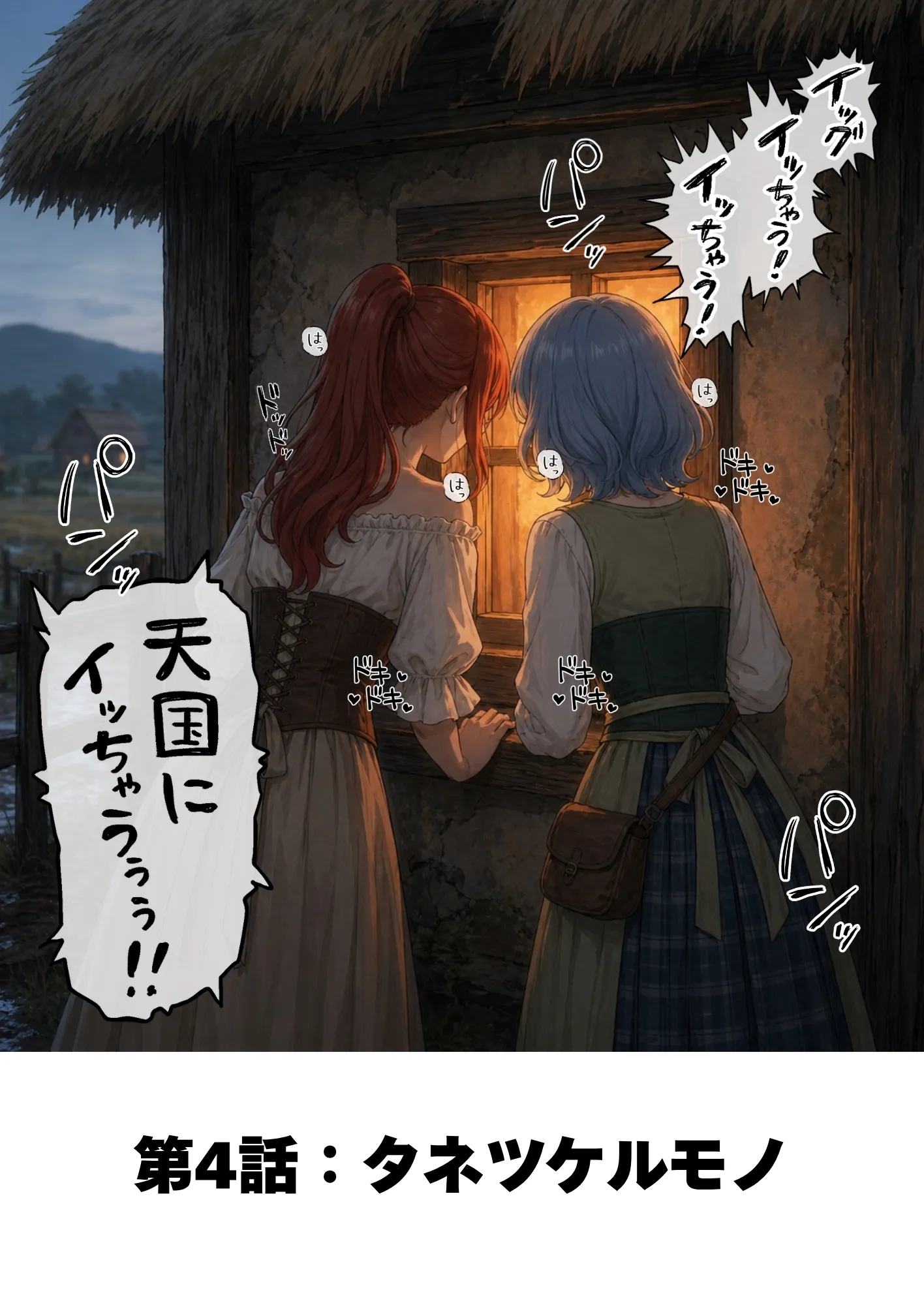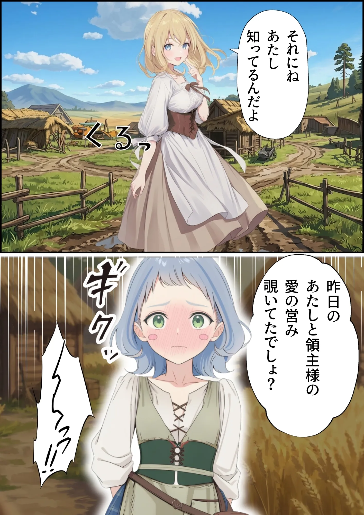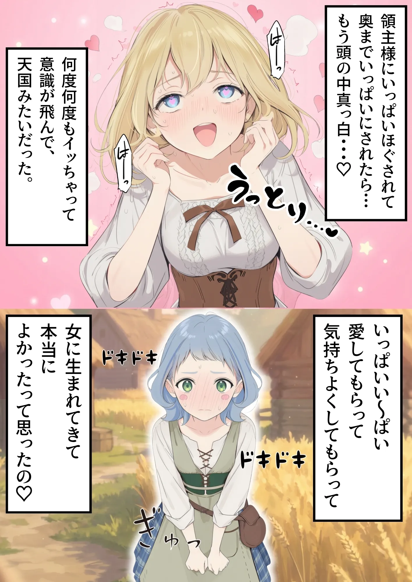 AIイラストの特性上、矛盾した場面(服装や髪型・体型など)はありますが、