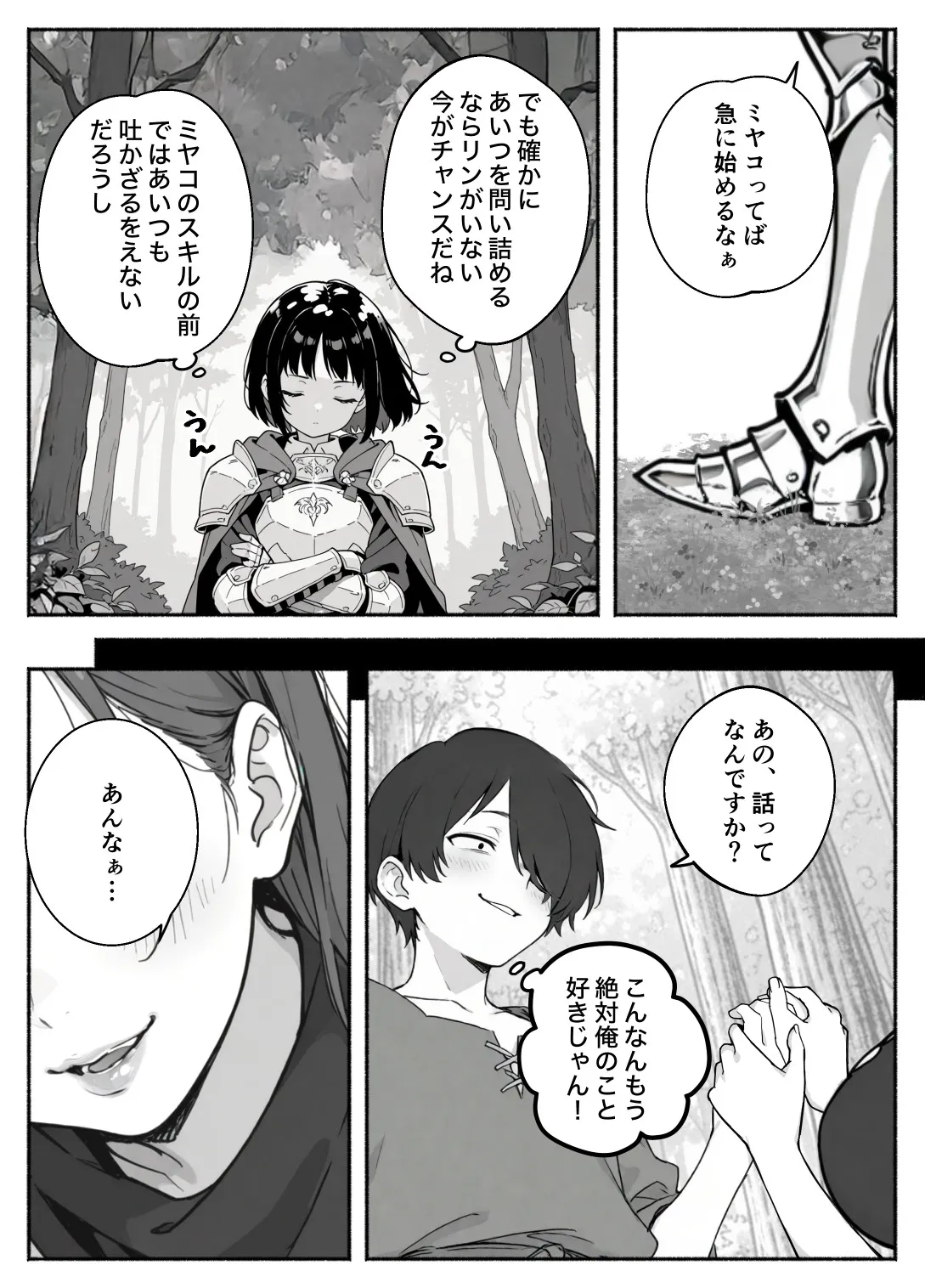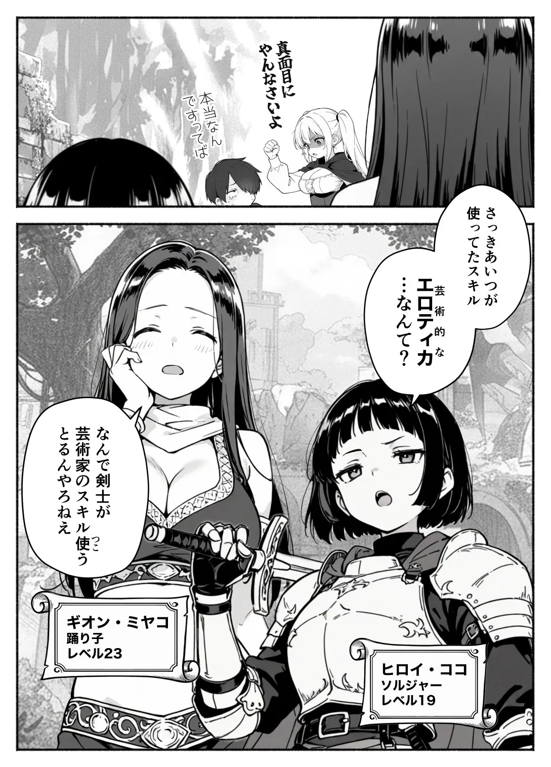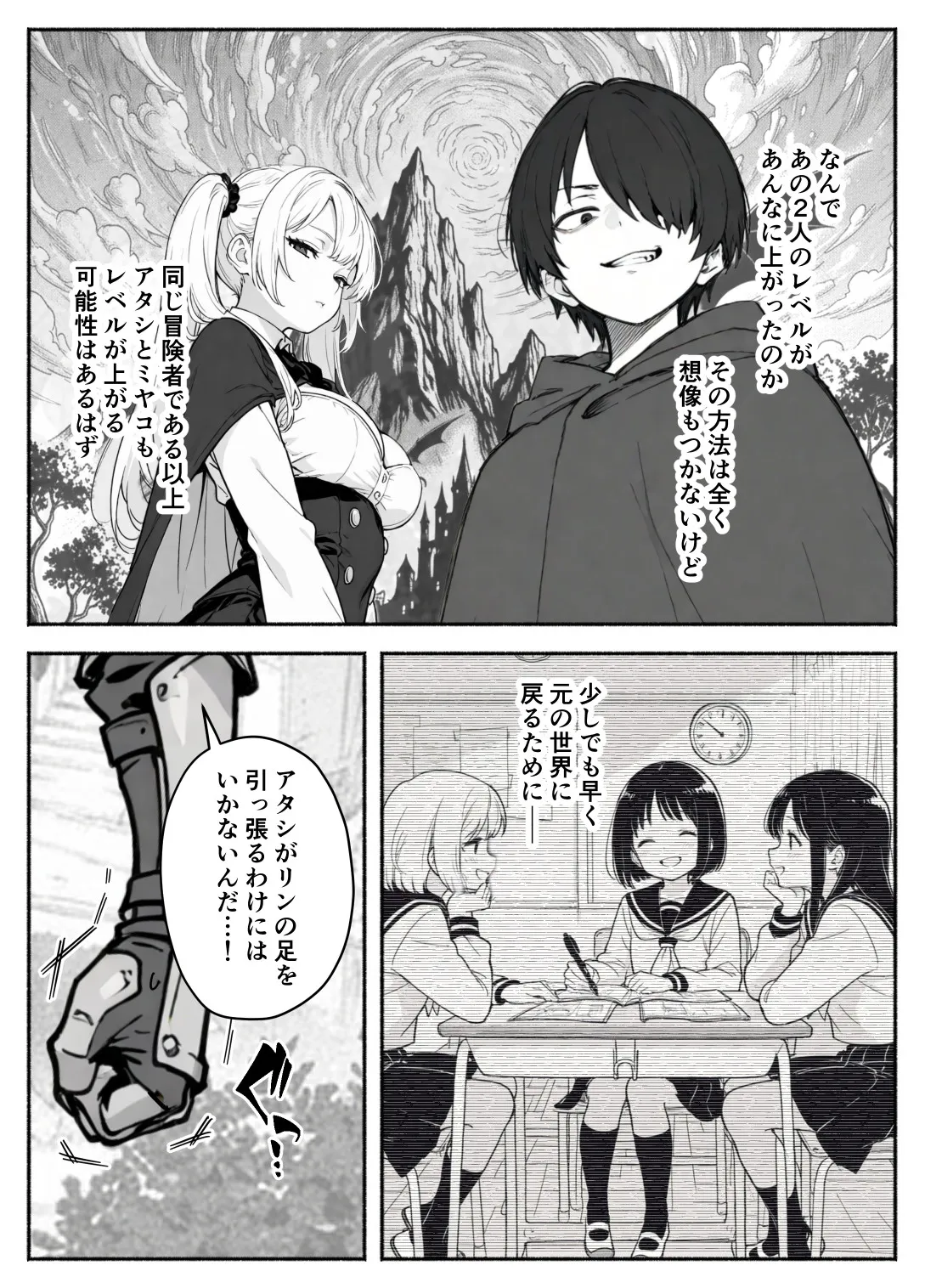 ココとミヤコは「サトルとリンだけ急激にレベルが上がっている理由」を探ろうと詰め寄る