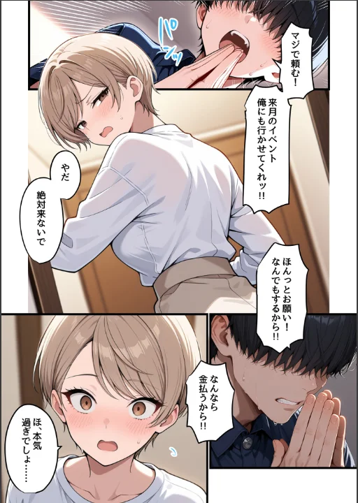 主人公・光山 優(みつやま ゆう)にはコスプレイヤーの彼女・桜田 麦(さくらだ むぎ)がいるがこれまで一度もコスプレを見せてもらったことがなかった一度だけでいいから生でコスプレが見たい、と拝みたおして恥ずかしがり屋の彼女に許可をもらいコスプレイベントに参加することに実際に生のコスプレイヤー達を見れて大興奮の主人公だったが興奮のあまり他のコスプレイヤーをついローアングルで撮影している姿が彼女に見つかってしまい…?【注意事項】※本作品のシチュエーションは全てフィクションです。登場する人物や設定等は、すべて架空のものとなります。※この作品内に登場するキャラクターは全員20歳以上です。※本作品はAIによる生成画像を使用して制作しております。※犯罪、その他違法行為を美化または助長する意図はございません。