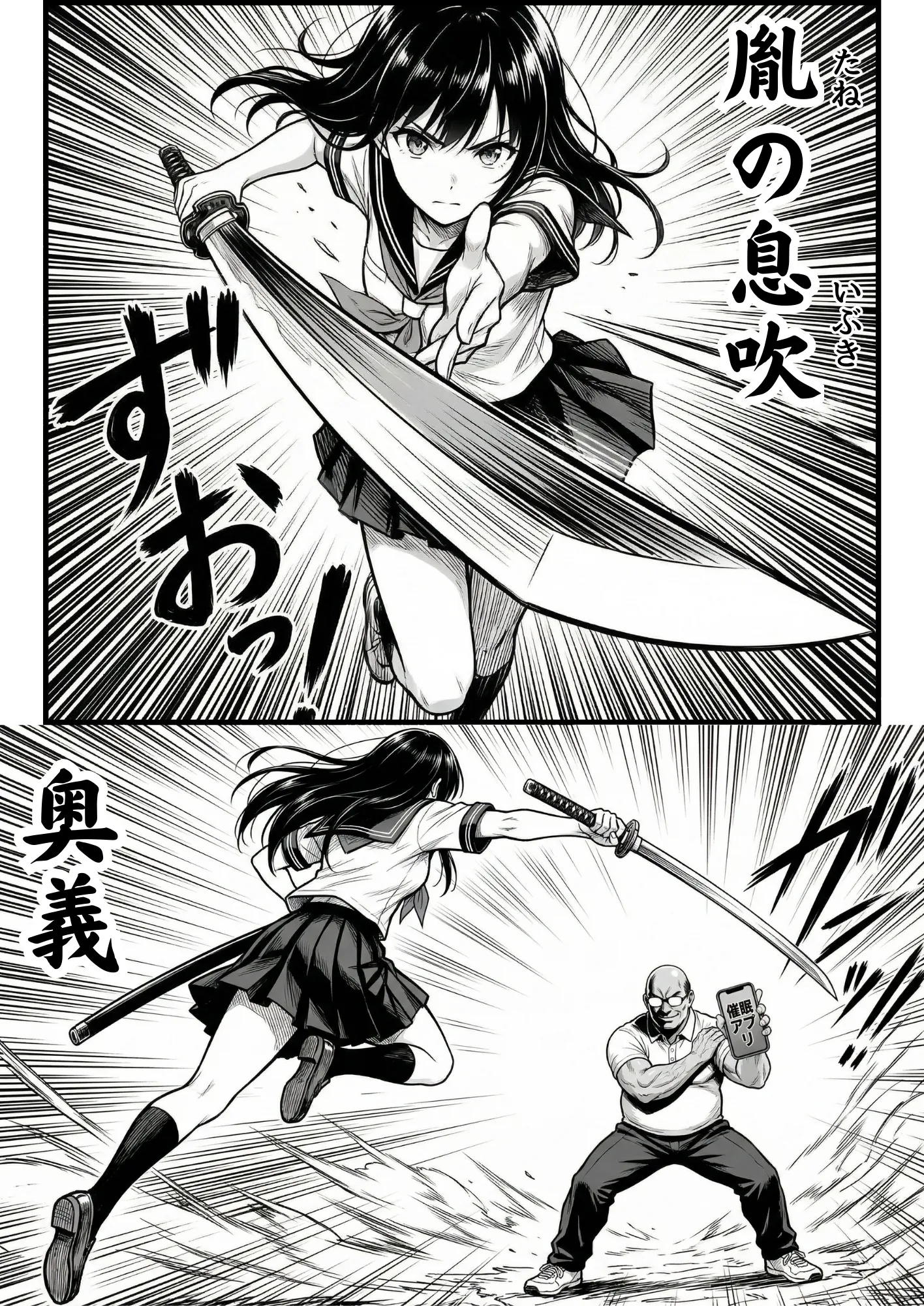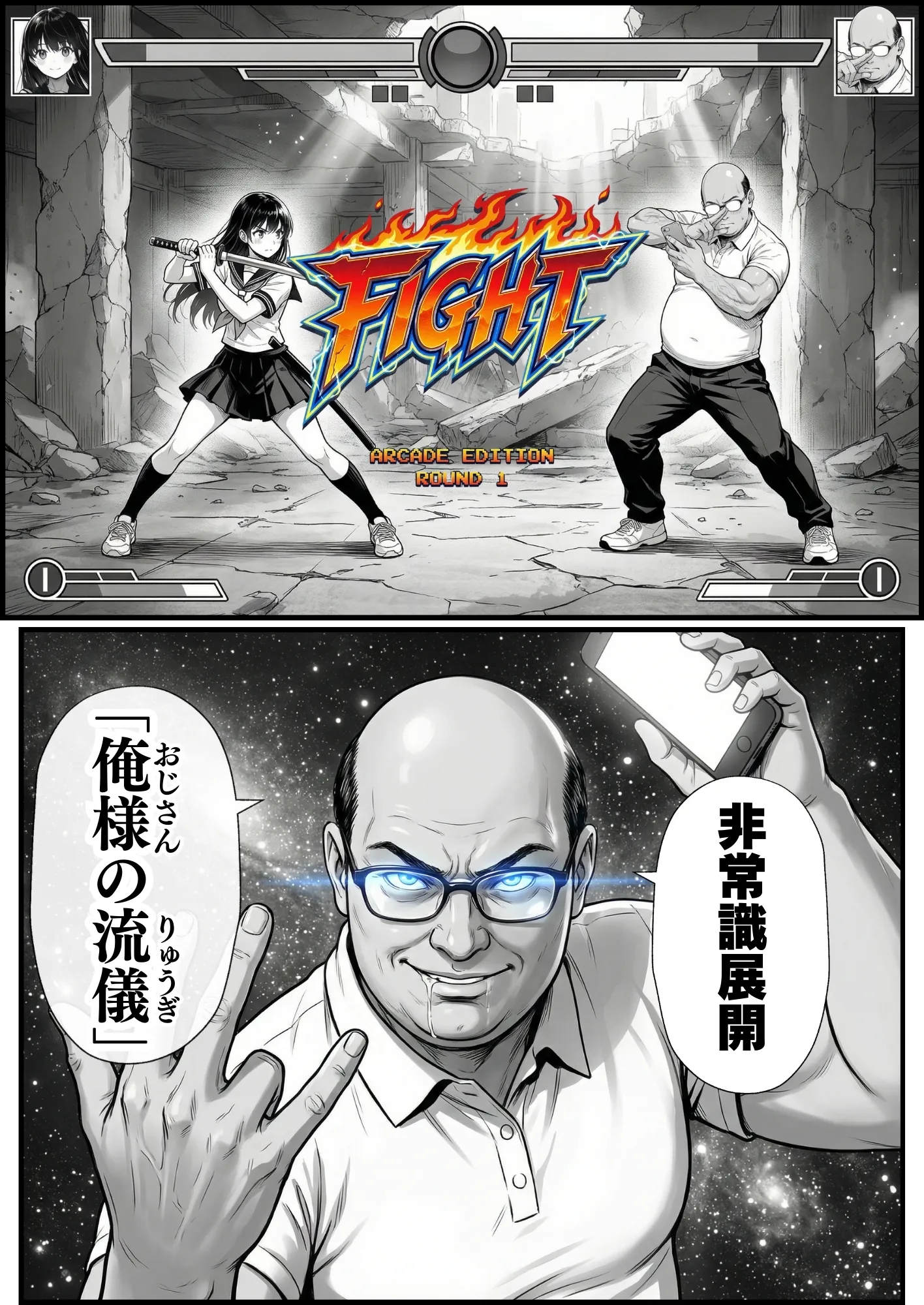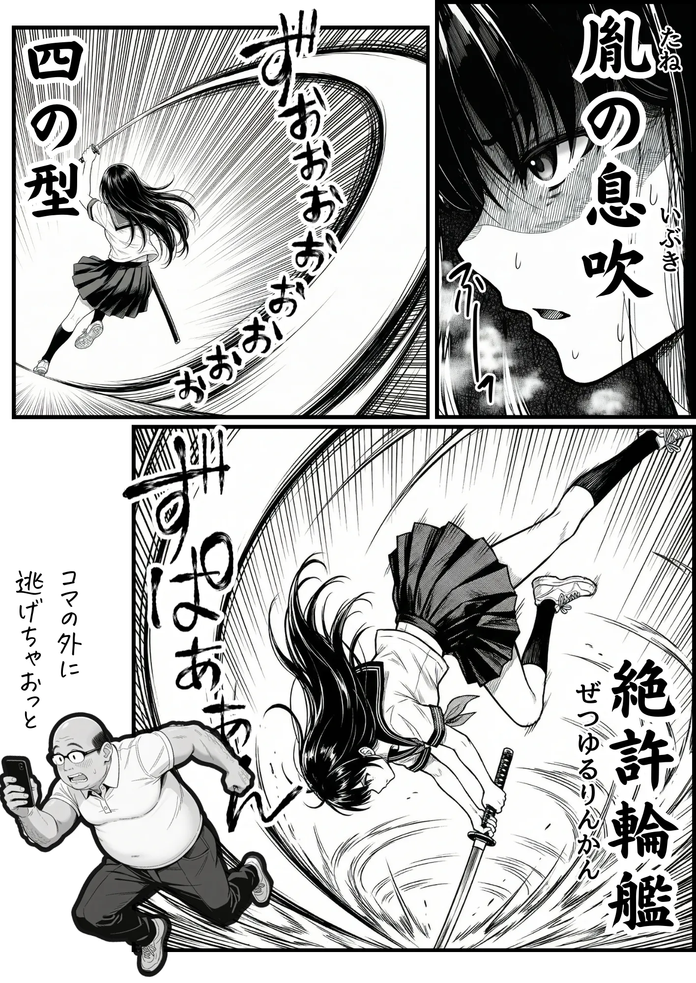 AIイラストの特性上、矛盾した場面(服装や髪型・体型など)はありますが、